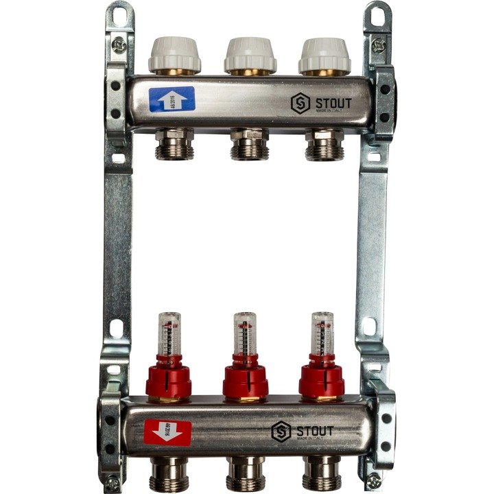 Купить Коллектор Stout из нержавеющей стали с расходомерами 3 вых. по цене 10506 руб. в Екатеринбурге вы можете в интернет-магазине «Мир Котлов». Большой выбор котлов, радиаторов, водонагревателей, комплектующих. Доставка по городу и РФ, самовывоз. Услуги монтажа.