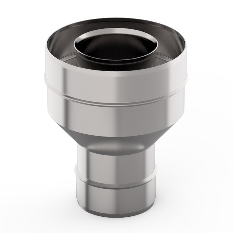 Предназначен для перехода с одностенных дымоходов на двустенные, а также закрывает слой теплоизоляции у двустенных дымоходов